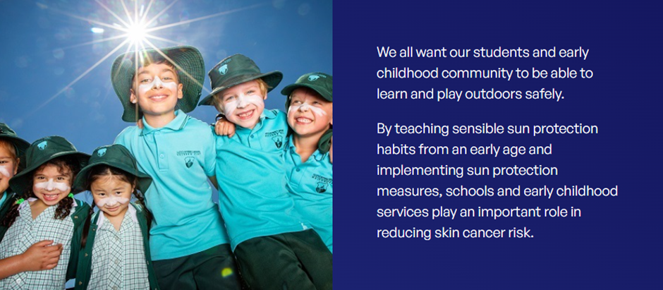 Reducing skin cancer risk UV exposure during childhood has a big impact on skin cancer risk – but it’s almost entirely preventable with good UV protection. Source – SunSmart website